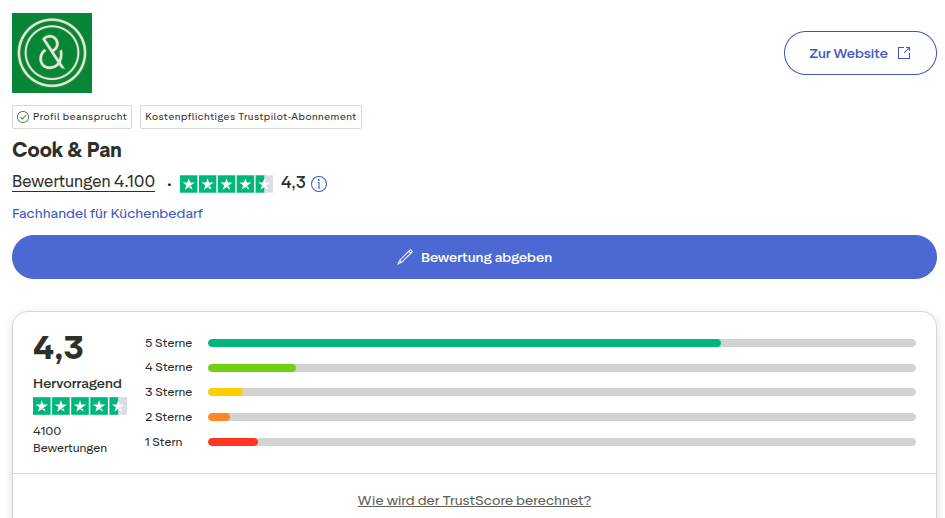 Mit einer Bewertung von 4,3 auf Trustpilot und über 4000 Rezensionen zählt die Marke zu den Anbietern mit dem besten Preis-Leistungs-Verhältnis in der Küchenwelt.